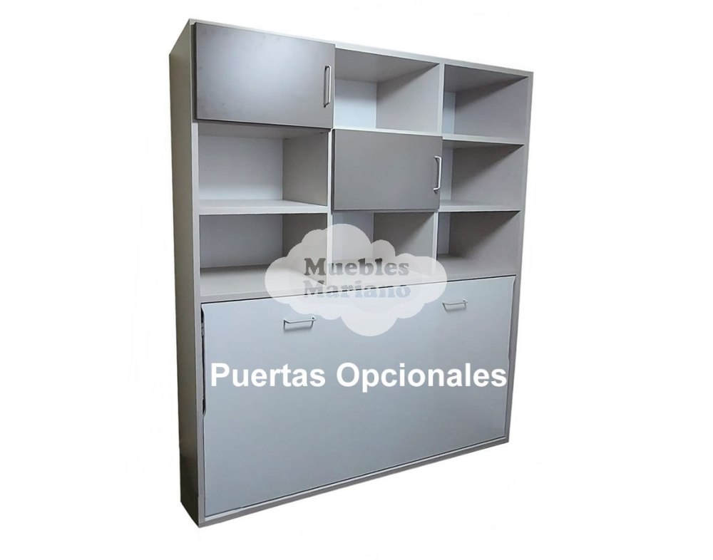 Cama abatible horizontal individual de 90 y 105cm con mesa de estudio, librería. Dispone de un sistema de apertura con amortiguadores hidráulicos que facilitan la apertura y cierre de la cama abatible, Sistema de bloqueo en cama una vez abierta. La propia mesa hace de pata una vez abramos la cama.