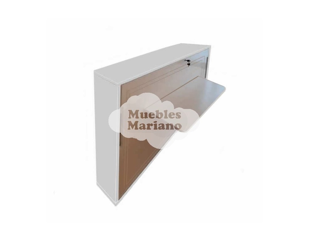 Cama abatible horizontal lacada con escritorio plegable y acabado en DM (Densidad Media) lacado con 3 capas. Sistema de apertura con amortiguadores hidráulicos que facilitan la apertura y cierre de la cama. Para abrir esta cama abatible de matrimonio, simplemente tienes que tirar un poco del tirador y la cama baja “sola”, sin necesidad de sacar las patas, pues salen automáticamente según va bajando la cama, quedándose bloqueadas una vez la cama esta completamente abierta..