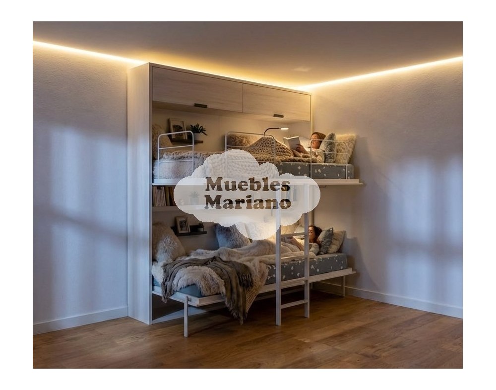 Incluye IVA, transporte y montaje dentro Madrid Capital Litera abatible horizontal de estructura metálica con sofá.
